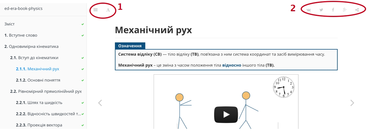 Справа є панель (2) з соціальними мережами. Ви можете поділитися з друзями інформацією з кожної сторінки інтерактивної книги. Так ви допоможете людям дізнатися про наш проект, а також продемонструєте, що Ви дуже розумні й читаєте корисну літературу :)